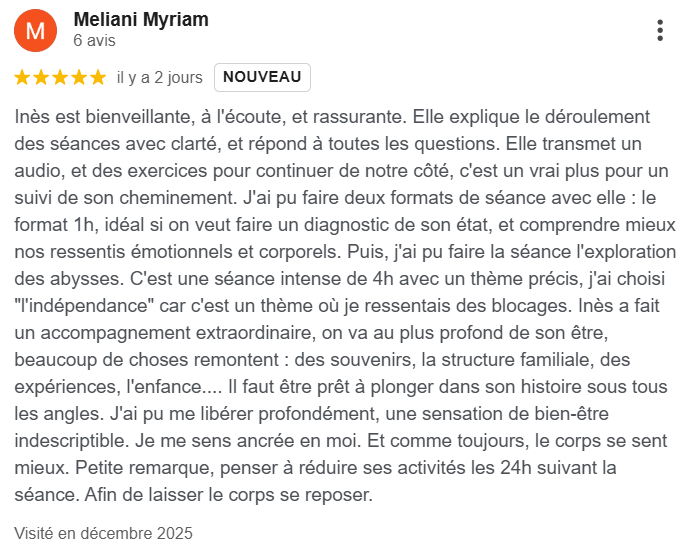– Objectifs : Réaliser un ensemble de pratiques et recevoir les soins nécessaires pour libérer des blocages ciblés et ancrer de nouveaux repères, avec un plan d’actions et suivi post-session.